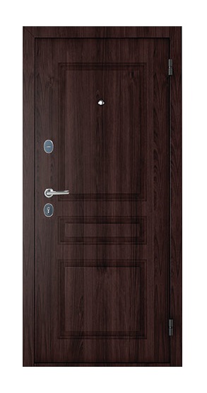 Двери входные металлические внешнего открывания серии "Стандарт" устанавливаются во внутренних помещениях общественных и жилых строениях. Габариты наружные с наличкой (ВхШ) 2100х960 мм, Габариты светового проема (ВхШ) 1960х737 мм, Монтажные габариты короба (ВхШ) 2050х860 мм, Глубина (толщина короба, мм) 100, Толщина полотна 74 мм, Высота порога 52 мм, 3 контура уплотнения, Цилиндровый замок Промет 32.11, Класс замка- 4 класс, Сувальдный замок Промет 30.01, Класс замка- 4 класс, Независимая ночная задвижка, Глазок с углом обзора 180 градусов, 2 петли, Наполнение двери- пенополистирол высокой плотности + технический МДФ. Внешняя отделка полотна- фрезированная МДФ панель 8 мм, Внутренняя отделка полотна- фрезированная МДФ панель 8 мм, Цвет внешней отделки полотна - орех темный. Цвет внутренней отделки полотна - белое дерево