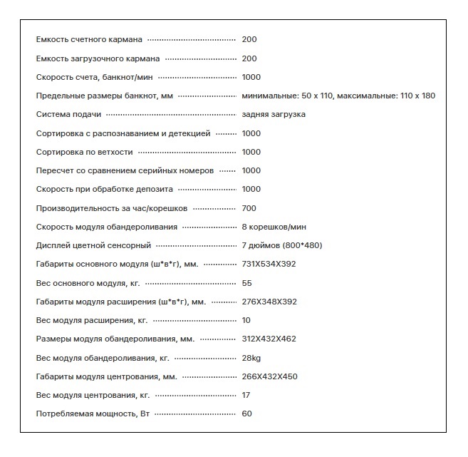 Выполняют функции: пересчет наличных; UV и MG детекции купюр; пересчет смешанных валют; автоматическое обнаружение сдвоенных или поврежденных банкнот