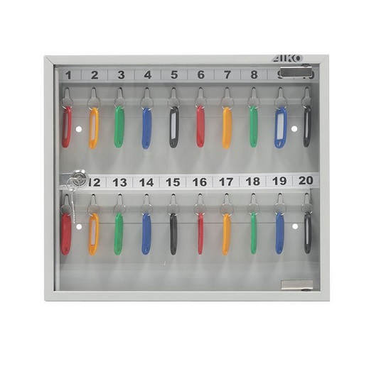 Ключница AIKO KEY-20 G предназначена для хранения и защиты от несанкционированного использования ключей. Корпус изготовлен из стали 0,9 мм, двери из стекла. Комплектуется металлическими крючками для размещения ключей, самоклеящимися номерками, брелоками в количестве 20 шт. Закрывается ключевым замком. Цвет ключницы светло-серый (Ral 7038)