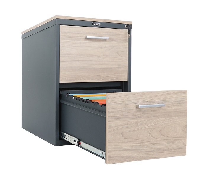 Комплектуется двумя выдвижными ящиками. Внутренний размер ящика (ВхШхГ, мм): 304х390х580. Габариты ящиков рассчитаны для хранения подвесных папок формата А4 или Foolscap.