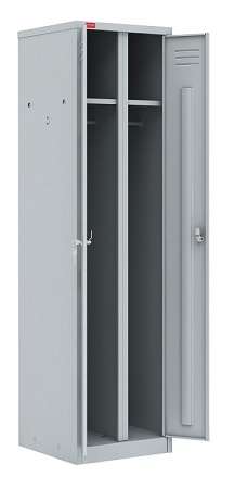 ШРМ-АК 500 - это надежный двухсекционный гардеробный металлический шкаф, который предназначен для использования в рамках хранения верхней или сменной одежды в таких помещениях, как офисы, различные производства, помещения технических и коммерческих назначений, также может использоваться и для хранения личных вещей. Одновременно обе секции оснащены небольшой полкой для хранения головных уборов, но чаще она используется для того, чтобы поставить сумку или разместить на ней свои вещи. В обеих секциях присутствуют прочные перекладины для вешалок, это достаточно удобно чтобы хранить даже увесистую зимнюю верхнюю одежду, собственно это и есть прямое назначение гардеробного металлического шкафа. Помимо полок и штанг для размещения одежды внутри секций есть небольшие крючки. Дверцы секций шкафа крепятся на внутренние петли и имеют вентиляционные отверстия с внешней стороны - это позволяет избавить ее от возможной накопившейся влаги и она сможет просохнуть. Металлический гардеробный шкаф ШРМ-АК 500 имеет в своем арсенале врезной ключевой замок немецкого производства от компании PaksLocks, он достаточно долговечен, надежен и сможет защитить содержимое от любого незапланированного доступа. Немного о дизайне данного товара - внешний вид шкафа ШРМ-АК 500 весьма прост и без  лишних деталей или излишеств, поэтому он впишется в дизайн практически любого помещения - от технических до офисных. ШРМ-АК 500 окрашен с применением полимерной краски неброского, светло-серого цвета по каталогу Ral 7035, обратите внимание, что шкаф поставляется в разобранном виде. Данный товар всегда есть в наличии в интернет-магазине "Мир Сейфов", его без проблем можно заказать с доставкой до ближайшей точки выдачи или по адресу в пределах страны.