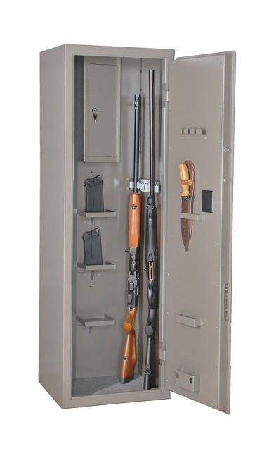 Оружейный сейф ОШ-63Э односекционный предназначен для хранения оружия и боеприпасов. Толщина металла корпуса 3 мм, толщина металла двери 3 мм. Вместимость сейфа 6 ствола. Максимальная высота ствола 1380 мм. Сейф комплектуется патронным отделением, съемными полками, металлическими держателями с резиновыми роликами. Двери сейфа закрываются электронным и ключевым замком. На задней стенке корпуса расположены отверстия для крепления. Цвет серый
