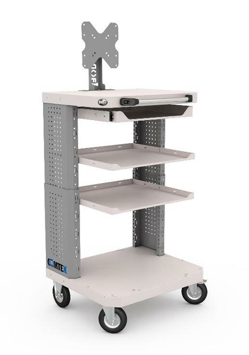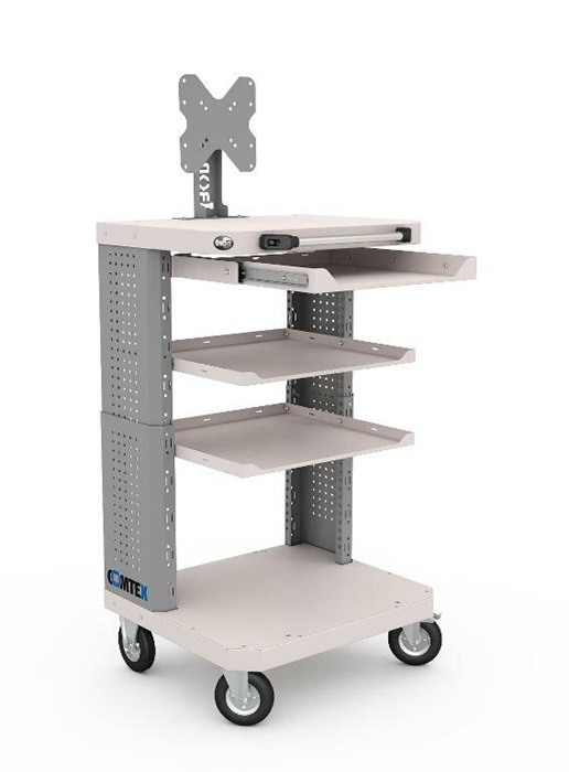 Дополнительно на тележку можно установить: выдвижную полку Comtex, выдвижной ящик Comtex, кронштейн для монитора, кронштейны для RACK модуля, цоколь для тумбы Comtex, лоток для тумбы/тележки Comtex, карман для документов А4 и другие аксессуары.