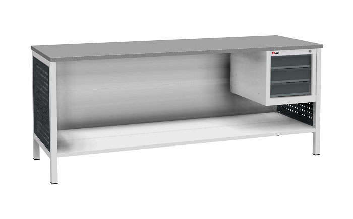 Цвет верстака: серый Ral 7038, панель облицовочная и лицевая панель ящиков/дверей антрацит Ral 7016. Тип покрытия: эпоксидная порошковая краска. Поставляется в разобранном виде