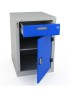 Тумба Woker 02 имеет одну регулируемую по высоте полку с шагом 50 мм. Полка тумбы установлена на стальные салазки, которые позволяют выдвигать полку на себя на 70% для облегчения разгрузки/погрузки. Ящик комплектуется противоскользящим ковриком и набором наклеек с пиктограммами для маркировки содержимого ящика. Полезный размер ящика: (ШхГ) 459х612 мм. Дверь тумбы закрывается на цилиндрический ключевой замок со стальной поворотной ручкой, секретность замка 2000 комбинаций. Открывание двери на 180 градусов.  Цвет: корпус верстака - серый Ral 7035, лицевая панель тумбы Ral 5005