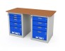 Цвет: корпус верстака - серый Ral 7035, лицевая панель тумбы Ral 5005. Поставляется в разобранном виде.