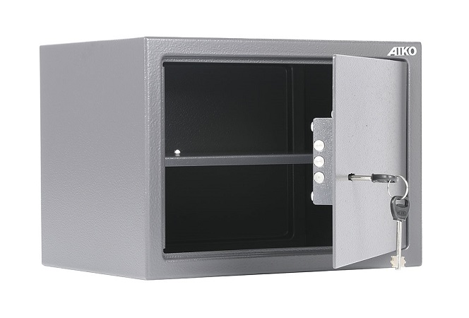 Небольшой мебельный сейф AIKO T-250 от производителя ПРОМЕТ - это хранилище, предназначенное для незначительных ценностей, документов, небольших сумм наличных денег и личного огнестрельного оружия, как боевого, так и травматического. Этот небольшой сейф имеет устойчивость к взлому - S1 ГОСТ Р 55148-2012, имеет средние размеры для мебельного сейфа, две внутренние полки, одностенный корпус и достаточно надежный ключевой замок. Толщина боковых стенок сейфа AIKO T-250 составляет 1.2 миллиметра, а толщина лицевой панели - 2.8 миллиметра, этого достаточно для надежного хранения вышеперечисленных ценностей. В данной модели предусмотрена возможность анкерного крепления к стене, поскольку сам сейф имеет достаточно небольшие размеры и всегда присутствует риск его хищения. Цвет - структурированный графит, неброский и немаркий, что достаточно удобно и сейф не бросается в глаза, это еще одна степень защиты содержимого. Купить мебельный сейф AIKO T-250 в наличии с доставкой до двери по всей РФ или самовывоз из ближайшей точки выдачи всегда возможен в интернет-магазине компании "Мир Сейфов". Гарантия производителя, а также скидки при оплате картой - у нас на сайте.